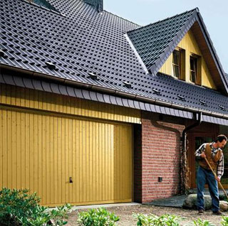 Porte de garage à ouverture latérale, coulissante double paroi. Modèle ISO45 Novoferm.